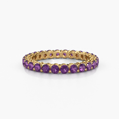 This is our Michelle full 2.4 ring. This specific type is called an eternity ring and it is set with a continuous line of identically cut gemstones. The ring is made in 14 Carat gold and is set with small amethysten, 2.4 mm. This gold Eternity ring is a perfectly beautiful and meaningful way to give your proposal that special touch. The magnificent evenly shaped amethysten are pave set around the ring. The identical amethysten are carefully selected to give the ring a maximum effect. Do keep in mind we use natural resources so small differences between stones are common. The special effect is enhanced due to precise positioning of the amethysten. This requires the utmost precision and a skillful hand but for our skilled artisans this is what excites them. The result is a stackable ring with a row of amethysten which seem to have no beginning nor end. The perfect symbol of your love for her! Isn't she a beauty?After receiving your order, our goldsmiths will start the creative process of making your Michelle full 2.4 ring. We don't keep stock. This is advantageous because these costs will not be passed on to you. Therefore, we can offer jewelry at exceptionally low prices.