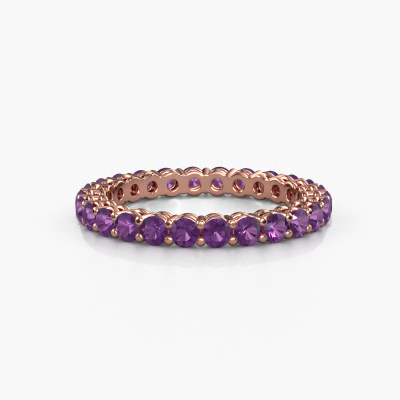 This is our Michelle full 2.4 ring. This specific type is called an eternity ring and it is set with a continuous line of identically cut gemstones. The ring is made in 14 Carat rose gold and is set with small amethysten, 2.4 mm. This rose gold Eternity ring is a perfectly beautiful and meaningful way to give your proposal that special touch. The magnificent evenly shaped amethysten are pave set around the ring. The identical amethysten are carefully selected to give the ring a maximum effect. Do keep in mind we use natural resources so small differences between stones are common. The special effect is enhanced due to precise positioning of the amethysten. This requires the utmost precision and a skillful hand but for our skilled artisans this is what excites them. The result is a stackable ring with a row of amethysten which seem to have no beginning nor end. The perfect symbol of your love for her! Isn't she a beauty?After receiving your order, our goldsmiths will start the creative process of making your Michelle full 2.4 ring. We don't keep stock. This is advantageous because these costs will not be passed on to you. Therefore, we can offer jewelry at exceptionally low prices.