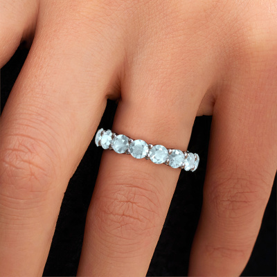 This Heddy rnd 4.0 stackable ring in 14 Carat white gold is set with aquamarine. This white gold stacked Heddy rnd 4.0 ring is the perfect addition to your ring collection! As the name suggests, it is a ring which can be combined on one finger with another ring. It gives you the opportunity to create your own style. A stacked ring usually represents a certain memory of someone special or a memorable moment. It is common to combine a stacked ring, representing an anniversary, with a wedding ring. But this eternity ring, combined with your other rings, also makes a classy fashion item. How do you like this exclusive white gold stackable ring? Simply customize this Heddy rnd 4.0 stackable ring, using our online tool. Subsequently, your personal eternity Heddy rnd 4.0 stackable ring will be made by hand by our goldsmiths. Precious metals and gemstones can be customized to your liking. Do you have specific preferences which are unavailable in our online tool? Please feel free to contact us. We will customize your personal exclusive stackable ring to your liking.Are you on a budget? Please feel free to contact us, so we can go discuss your options. We offer our rings at guaranteed best price, because we make them to order. You won't find such a price anywhere else!To make it easier for you, we offer a 30 day return policy. Check our terms and conditions.