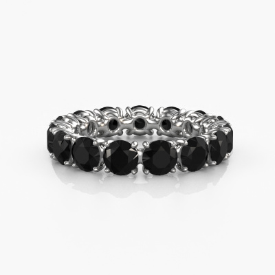 This is our Vivienne 4.2 ring. This specific type is called an eternity ring and it is set with a continuous line of identically cut gemstones. The ring is made in 14 Carat white gold and is set with small black diamonds, 0.36 crt. This white gold Eternity ring is a perfectly beautiful and meaningful way to give your proposal that special touch. The magnificent evenly shaped black diamonds are pave set around the ring. The identical black diamonds are carefully selected to give the ring a maximum effect. Do keep in mind we use natural resources so small differences between stones are common. The special effect is enhanced due to precise positioning of the black diamonds. This requires the utmost precision and a skillful hand but for our skilled artisans this is what excites them. The result is a ring with a row of black diamonds which seem to have no beginning nor end. The perfect symbol of your love for her! Isn't she a beauty?By using a combination of the latest modern techniques, combined with ancient crafting, we can make all our rings in our own studio. Each jewel is made to order. This is advantageous because we can offer you a price you won't find anywhere else.