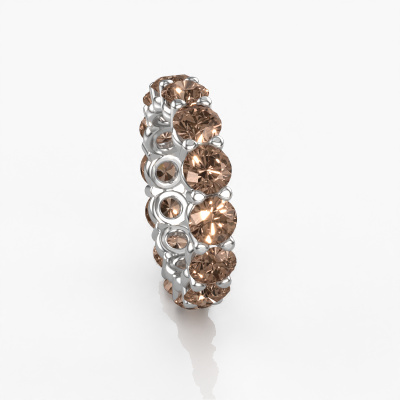 This is our Heddy rnd 4.7 ring. This specific type is called an eternity ring and it is set with a continuous line of identically cut gemstones. The ring is made in 14 Carat white gold and is set with small brown diamonds, 0.40 crt. This white gold Eternity ring is a perfectly beautiful and meaningful way to give your proposal that special touch. The magnificent evenly shaped brown diamonds are pave set around the ring. The identical brown diamonds are carefully selected to give the ring a maximum effect. Do keep in mind we use natural resources so small differences between stones are common. The special effect is enhanced due to precise positioning of the brown diamonds. This requires the utmost precision and a skillful hand but for our skilled artisans this is what excites them. The result is a ring with a row of brown diamonds which seem to have no beginning nor end. The perfect symbol of your love for her! Isn't she a beauty?Because we design and deliver our own rings, we can offer you a ring at a price you won't find anywhere else. A ring is made to order, which helps prevent excess supplies, so we can make you a great price offer. We understand it feels risky, buying your ring online, but we will gladly assist in the designing process, taking your budget into consideration.Our team of talented, passionate designers add new ring designs to our online collection daily. Our objective in doing so, is to be able to offer you a wide variety of jewels. Please feel free to request a quote if you have specific wishes for your ring. We guarantee to make you an offer you can't refuse.To make it easier for you, we offer a 30 day return policy. Check our terms and conditions.