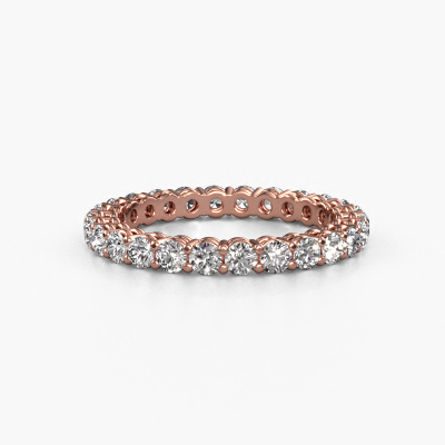 This is our Michelle full 2.4 ring. This specific type is called an eternity ring and it is set with a continuous line of identically cut gemstones. The ring is made in 14 Carat rose gold and is set with small cz-stones, 2.4 mm. This rose gold Eternity ring is a perfectly beautiful and meaningful way to give your proposal that special touch. The magnificent evenly shaped cz-stones are pave set around the ring. The identical cz-stones are carefully selected to give the ring a maximum effect. Do keep in mind we use natural resources so small differences between stones are common. The special effect is enhanced due to precise positioning of the cz-stones. This requires the utmost precision and a skillful hand but for our skilled artisans this is what excites them. The result is a stackable ring with a row of cz-stones which seem to have no beginning nor end. The perfect symbol of your love for her! Isn't she a beauty?After receiving your order, our goldsmiths will start the creative process of making your Michelle full 2.4 ring. We don't keep stock. This is advantageous because these costs will not be passed on to you. Therefore, we can offer jewelry at exceptionally low prices.