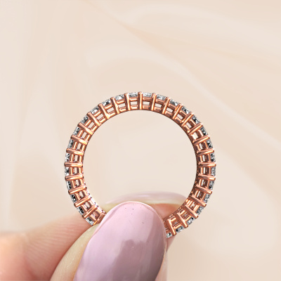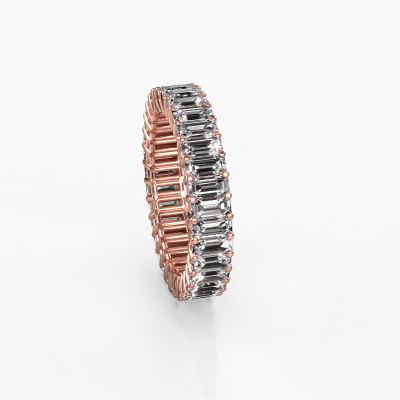 This is our Heddy EME 4x2 ring. This specific type is called an eternity ring and it is set with a continuous line of identically cut gemstones. The ring is made in 14 Carat rose gold and is set with small diamonds, 0.15 crt. This rose gold Eternity ring is a perfectly beautiful and meaningful way to give your proposal that special touch. The magnificent evenly shaped diamonds are pave set around the ring. The identical diamonds are carefully selected to give the ring a maximum effect. Do keep in mind we use natural resources so small differences between stones are common. The special effect is enhanced due to precise positioning of the diamonds. This requires the utmost precision and a skillful hand but for our skilled artisans this is what excites them. The result is a stackable ring with a row of diamonds which seem to have no beginning nor end. The perfect symbol of your love for her! Isn't she a beauty?Because we design and deliver our own rings, we can offer you a ring at a price you won't find anywhere else. A ring is made to order, which helps prevent excess supplies, so we can make you a great price offer. We understand it feels risky, buying your ring online, but we will gladly assist in the designing process, taking your budget into consideration.Our team of talented, passionate designers add new ring designs to our online collection daily. Our objective in doing so, is to be able to offer you a wide variety of jewels. Please feel free to request a quote if you have specific wishes for your ring. We guarantee to make you an offer you can't refuse.To make it easier for you, we offer a 30 day return policy. Check our terms and conditions.