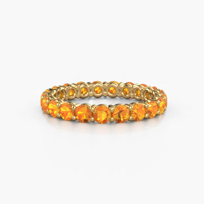 This is our Heddy rnd 2.9 ring. This specific type is called an eternity ring and it is set with a continuous line of identically cut gemstones. The ring is made in 14 Carat gold and is set with small citrin, 2.9 mm. The amazing citrin are identical in size and are set in the ring band. Our citrin are selected with great care so they are identical, which gives the best result. In order to get the best result, our artisans position all citrin by hand with the utmost care. Our Goldsmiths have one ambition, which is creating the perfect ring. That is why we love what we do. In the end you get a stunning classic gold ring with a row of citrin which seem to have no beginning nor end. The perfect symbol of your undying love for her! How special is that!By using a combination of the latest modern techniques, combined with ancient crafting, we can make all our rings in our own studio. Each jewel is made to order. This is advantageous because we can offer you a price you won't find anywhere else.