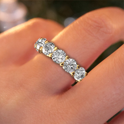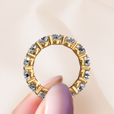 This is our Heddy rnd 5.0 ring. This specific type is called an eternity ring and it is set with a continuous line of identically cut gemstones. The ring is made in 14 Carat gold and is set with small lab grown diamonds, 7.00 crt. The amazing lab grown diamonds are identical in size and are set in the ring band. Our lab grown diamonds are selected with great care so they are identical, which gives the best result. In order to get the best result, our artisans position all lab grown diamonds by hand with the utmost care. Our Goldsmiths have one ambition, which is creating the perfect ring. That is why we love what we do. In the end you get a stunning exclusive gold ring with a row of lab grown diamonds which seem to have no beginning nor end. The perfect symbol of your undying love for her! How special is that!By using a combination of the latest modern techniques, combined with ancient crafting, we can make all our rings in our own studio. Each jewel is made to order. This is advantageous because we can offer you a price you won't find anywhere else.