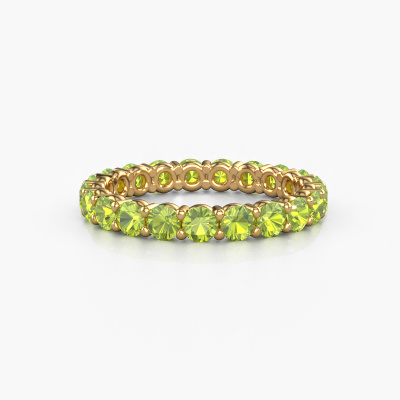 This is our Heddy rnd 2.9 ring. This specific type is called an eternity ring and it is set with a continuous line of identically cut gemstones. The ring is made in 14 Carat gold and is set with small peridot, 2.9 mm. The amazing peridot are identical in size and are set in the ring band. Our peridot are selected with great care so they are identical, which gives the best result. In order to get the best result, our artisans position all peridot by hand with the utmost care. Our Goldsmiths have one ambition, which is creating the perfect ring. That is why we love what we do. In the end you get a stunning classic gold ring with a row of peridot which seem to have no beginning nor end. The perfect symbol of your undying love for her! How special is that!By using a combination of the latest modern techniques, combined with ancient crafting, we can make all our rings in our own studio. Each jewel is made to order. This is advantageous because we can offer you a price you won't find anywhere else.