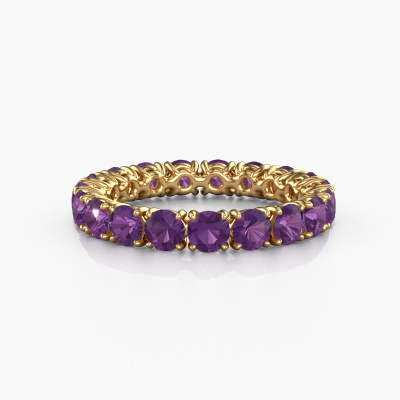 This is our Vivienne 3.4 ring. This specific type is called an eternity ring and it is set with a continuous line of identically cut gemstones. The ring is made in 14 Carat gold and is set with small amethysten, 3.4 mm. The amazing amethysten are identical in size and are set in the ring band. Our amethysten are selected with great care so they are identical, which gives the best result. In order to get the best result, our artisans position all amethysten by hand with the utmost care. Our Goldsmiths have one ambition, which is creating the perfect ring. That is why we love what we do. In the end you get a stunning classic gold stackable ring with a row of amethysten which seem to have no beginning nor end. The perfect symbol of your undying love for her! How special is that!Are you on a budget? Please feel free to contact us, so we can go discuss your options. We offer our rings at guaranteed best price, because we make them to order. You won't find such a price anywhere else!Our team of talented, passionate designers add new ring designs to our online collection daily. Our objective in doing so, is to be able to offer you a wide variety of jewels. Please feel free to request a quote if you have specific wishes for your ring. We guarantee to make you an offer you can't refuse.To make it easier for you, we offer a 30 day return policy. Check our terms and conditions.