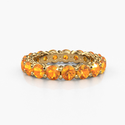 This is our Michelle full 3.7 ring. This specific type is called an eternity ring and it is set with a continuous line of identically cut gemstones. The ring is made in 14 Carat gold and is set with small citrin, 3.7 mm. The amazing citrin are identical in size and are set in the ring band. Our citrin are selected with great care so they are identical, which gives the best result. In order to get the best result, our artisans position all citrin by hand with the utmost care. Our Goldsmiths have one ambition, which is creating the perfect ring. That is why we love what we do. In the end you get a stunning modern gold stackable ring with a row of citrin which seem to have no beginning nor end. The perfect symbol of your undying love for her! How special is that!Because we design and deliver our own rings, we can offer you a ring at a price you won't find anywhere else. A ring is made to order, which helps prevent excess supplies, so we can make you a great price offer. We understand it feels risky, buying your ring online, but we will gladly assist in the designing process, taking your budget into consideration.Our team of talented, passionate designers add new ring designs to our online collection daily. Our objective in doing so, is to be able to offer you a wide variety of jewels. Please feel free to request a quote if you have specific wishes for your ring. We guarantee to make you an offer you can't refuse.To make it easier for you, we offer a 30 day return policy. Check our terms and conditions.