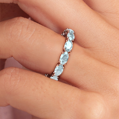 This exclusive rose gold Vivienne OVL 5x3 ring is a true work of art! This ring is made of 14 Carat rose gold and is set with 5x3 mm oval aquamarine. The smallest ornaments are crafted by our goldsmith with a lot of patience and great passion. In order to create this ring with great precision, this craft requires a keen eye and a skillful hand. A challenge which ignites a fire in our expert goldsmiths. The exquisite aquamarine are set in a way that their unique qualities are strengthened. This gives the ring an even more glamorous appearance. The ring is unique by itself though, because of the natural birthstones we selected especially for this Vivienne OVL 5x3 ring. And by choosing the precious metal yourself, you create a unique ring. Customize your own eternityVivienne OVL 5x3 ring, which will then be created by our goldsmiths with great passion. Do you prefer a different option than is shown here in the rose gold Vivienne OVL 5x3 ring? Then our online tools offers various options. Feel free to ask us for help if you are unable to succeed. We are happy to answer your questions!After receiving your order, our goldsmiths will passionately start the creative process of making your ring in our own studio. Because we don't have a big stockpile, these costs will not be passed on to you. Our pricing is proof of that! We offer top quality jewels at lowest price, guaranteed.To make it easier for you, we offer a 30 day return policy. Check our terms and conditions.