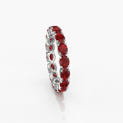 This is our Vivienne OVL 4x3 ring. This specific type is called an eternity ring and it is set with a continuous line of identically cut gemstones. The ring is made in 14 Carat white gold and is set with small ruby, 4x3 mm. This white gold Eternity ring is a perfectly beautiful and meaningful way to give your proposal that special touch. The magnificent evenly shaped ruby are pave set around the ring. The identical ruby are carefully selected to give the ring a maximum effect. Do keep in mind we use natural resources so small differences between stones are common. The special effect is enhanced due to precise positioning of the ruby. This requires the utmost precision and a skillful hand but for our skilled artisans this is what excites them. The result is a ring with a row of ruby which seem to have no beginning nor end. The perfect symbol of your love for her! Isn't she a beauty?Because we design and deliver our own rings, we can offer you a ring at a price you won't find anywhere else. A ring is made to order, which helps prevent excess supplies, so we can make you a great price offer. We understand it feels risky, buying your ring online, but we will gladly assist in the designing process, taking your budget into consideration.Our team of talented, passionate designers add new ring designs to our online collection daily. Our objective in doing so, is to be able to offer you a wide variety of jewels. Please feel free to request a quote if you have specific wishes for your ring. We guarantee to make you an offer you can't refuse.To make it easier for you, we offer a 30 day return policy. Check our terms and conditions.