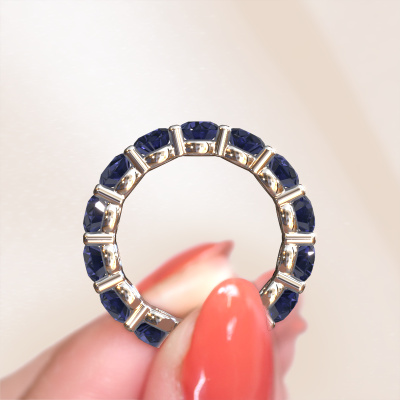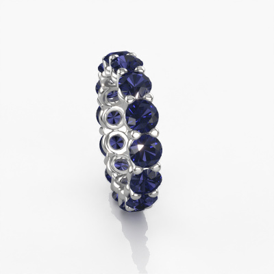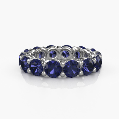 This is our Heddy rnd 4.7 ring. This specific type is called an eternity ring and it is set with a continuous line of identically cut gemstones. The ring is made in 14 Carat white gold and is set with small sapphire, 4.7 mm. This white gold Eternity ring is a perfectly beautiful and meaningful way to give your proposal that special touch. The magnificent evenly shaped sapphire are pave set around the ring. The identical sapphire are carefully selected to give the ring a maximum effect. Do keep in mind we use natural resources so small differences between stones are common. The special effect is enhanced due to precise positioning of the sapphire. This requires the utmost precision and a skillful hand but for our skilled artisans this is what excites them. The result is a ring with a row of sapphire which seem to have no beginning nor end. The perfect symbol of your love for her! Isn't she a beauty?Because we design and deliver our own rings, we can offer you a ring at a price you won't find anywhere else. A ring is made to order, which helps prevent excess supplies, so we can make you a great price offer. We understand it feels risky, buying your ring online, but we will gladly assist in the designing process, taking your budget into consideration.Our team of talented, passionate designers add new ring designs to our online collection daily. Our objective in doing so, is to be able to offer you a wide variety of jewels. Please feel free to request a quote if you have specific wishes for your ring. We guarantee to make you an offer you can't refuse.To make it easier for you, we offer a 30 day return policy. Check our terms and conditions.