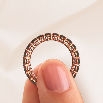 This Heddy OVL 3x5 stackable ring in 14 Carat rose gold is set with smokey quartz. This rose gold stacked Heddy OVL 3x5 ring is the perfect addition to your ring collection! As the name suggests, it is a ring which can be combined on one finger with another ring. It gives you the opportunity to create your own style. A stacked ring usually represents a certain memory of someone special or a memorable moment. It is common to combine a stacked ring, representing an anniversary, with a wedding ring. But this eternity ring, combined with your other rings, also makes a classy fashion item. Customize your own eternityHeddy OVL 3x5 stackable ring, which will then be created by our goldsmiths with great passion. Do you prefer a different option than is shown here in the rose gold Heddy OVL 3x5 stackable ring? Then our online tools offers various options. Feel free to ask us for help if you are unable to succeed. We are happy to answer your questions!Because we design and deliver our own rings, we can offer you a ring at a price you won't find anywhere else. A ring is made to order, which helps prevent excess supplies, so we can make you a great price offer. We understand it feels risky, buying your ring online, but we will gladly assist in the designing process, taking your budget into consideration.To make it easier for you, we offer a 30 day return policy. Check our terms and conditions.