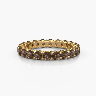 This is our Michelle full 3.0 ring. This specific type is called an eternity ring and it is set with a continuous line of identically cut gemstones. The ring is made in 14 Carat gold and is set with small smokey quartz, 3 mm. The amazing smokey quartz are identical in size and are set in the ring band. Our smokey quartz are selected with great care so they are identical, which gives the best result. In order to get the best result, our artisans position all smokey quartz by hand with the utmost care. Our Goldsmiths have one ambition, which is creating the perfect ring. That is why we love what we do. In the end you get a stunning classic gold stackable ring with a row of smokey quartz which seem to have no beginning nor end. The perfect symbol of your undying love for her! How special is that!Because we design and deliver our own rings, we can offer you a ring at a price you won't find anywhere else. A ring is made to order, which helps prevent excess supplies, so we can make you a great price offer. We understand it feels risky, buying your ring online, but we will gladly assist in the designing process, taking your budget into consideration.Our talented designers add new designs to our online collection daily. Together they create a diverse collection of the finest jewelry. If you prefer to make a ring according your own design, please feel free to request a quote. We will make you an amazing offer, based on quality and price.To make it easier for you, we offer a 30 day return policy. Check our terms and conditions.