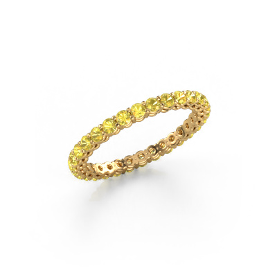 This is our Michelle full 2.0 ring. This specific type is called an eternity ring and it is set with a continuous line of identically cut gemstones. The ring is made in 14 Carat gold and is set with small yellow sapphire, 2 mm. The amazing yellow sapphire are identical in size and are set in the ring band. Our yellow sapphire are selected with great care so they are identical, which gives the best result. In order to get the best result, our artisans position all yellow sapphire by hand with the utmost care. Our Goldsmiths have one ambition, which is creating the perfect ring. That is why we love what we do. In the end you get a stunning classic gold stackable ring with a row of yellow sapphire which seem to have no beginning nor end. The perfect symbol of your undying love for her! How special is that!By using a combination of the latest modern techniques, combined with ancient crafting, we can make all our rings in our own studio. Each jewel is made to order. This is advantageous because we can offer you a price you won't find anywhere else.New jewelry designs are added to our online collection daily. Our team of passionate designers strive to create extraordinary and diverse designs. Have you seen a ring you like? Please feel free to contact us. Based on a good price/ quality ratio, we will make you an offer you can't refuse!To make it easier for you, we offer a 30 day return policy. Check our terms and conditions.