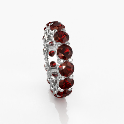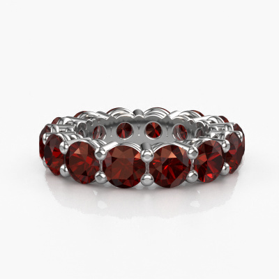 This is our Michelle full 5.0 ring. This specific type is called an eternity ring and it is set with a continuous line of identically cut gemstones. The ring is made in platinum and is set with small garnet, 5 mm. The amazing garnet are identical in size and are set in the ring band. Our garnet are selected with great care so they are identical, which gives the best result. In order to get the best result, our artisans position all garnet by hand with the utmost care. Our Goldsmiths have one ambition, which is creating the perfect ring. That is why we love what we do. In the end you get a stunning exclusive platinum stackable ring with a row of garnet which seem to have no beginning nor end. The perfect symbol of your undying love for her! How special is that!By using a combination of the latest modern techniques, combined with ancient crafting, we can make all our rings in our own studio. Each jewel is made to order. This is advantageous because we can offer you a price you won't find anywhere else.New jewelry designs are added to our online collection daily. Our team of passionate designers strive to create extraordinary and diverse designs. Have you seen a ring you like? Please feel free to contact us. Based on a good price/ quality ratio, we will make you an offer you can't refuse!To make it easier for you, we offer a 30 day return policy. Check our terms and conditions.