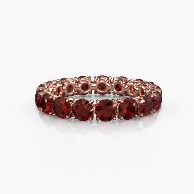 This is our Vivienne 3.7 ring. This specific type is called an eternity ring and it is set with a continuous line of identically cut gemstones. The ring is made in 14 Carat rose gold and is set with small garnet, 3.7 mm. The amazing garnet are identical in size and are set in the ring band. Our garnet are selected with great care so they are identical, which gives the best result. In order to get the best result, our artisans position all garnet by hand with the utmost care. Our Goldsmiths have one ambition, which is creating the perfect ring. That is why we love what we do. In the end you get a stunning classic rose gold stackable ring with a row of garnet which seem to have no beginning nor end. The perfect symbol of your undying love for her! How special is that!After receiving your order, our goldsmiths will start the creative process of making your Vivienne 3.7 ring. We don't keep stock. This is advantageous because these costs will not be passed on to you. Therefore, we can offer jewelry at exceptionally low prices.New jewelry designs are added to our online collection daily. Our team of passionate designers strive to create extraordinary and diverse designs. Have you seen a ring you like? Please feel free to contact us. Based on a good price/ quality ratio, we will make you an offer you can't refuse!To make it easier for you, we offer a 30 day return policy. Check our terms and conditions.