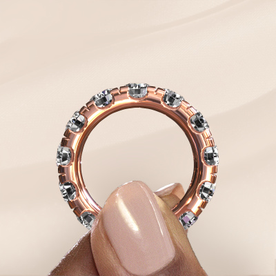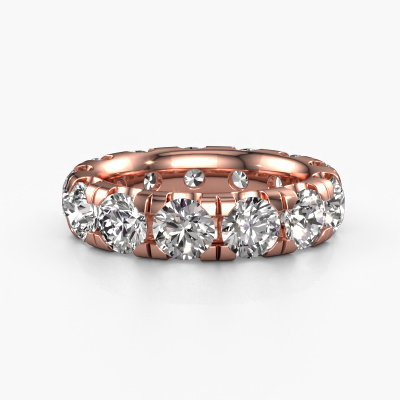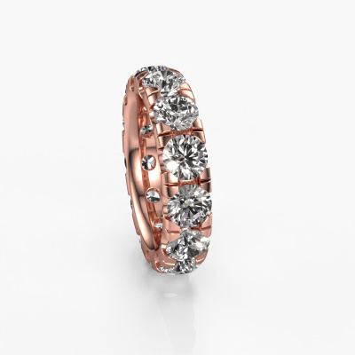 This is our Jackie 5.0 ring. This specific type is called an eternity ring and it is set with a continuous line of identically cut gemstones. The ring is made in 14 Carat rose gold and is set with small lab grown diamonds, 6.50 crt. The amazing lab grown diamonds are identical in size and are set in the ring band. Our lab grown diamonds are selected with great care so they are identical, which gives the best result. In order to get the best result, our artisans position all lab grown diamonds by hand with the utmost care. Our Goldsmiths have one ambition, which is creating the perfect ring. That is why we love what we do. In the end you get a stunning exclusive rose gold stackable ring with a row of lab grown diamonds which seem to have no beginning nor end. The perfect symbol of your undying love for her! How special is that!After receiving your order, our goldsmiths will passionately start the creative process of making your ring in our own studio. Because we don't have a big stockpile, these costs will not be passed on to you. Our pricing is proof of that! We offer top quality jewels at lowest price, guaranteed.Our talented designers add new designs to our online collection daily. Together they create a diverse collection of the finest jewelry. If you prefer to make a ring according your own design, please feel free to request a quote. We will make you an amazing offer, based on quality and price.To make it easier for you, we offer a 30 day return policy. Check our terms and conditions.