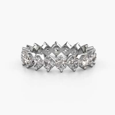 This is our Janie 3.4mm ring. This specific type is called an eternity ring and it is set with a continuous line of identically cut gemstones. The ring is made in 14 Carat white gold and is set with small lab grown diamonds, 3.00 crt. The amazing lab grown diamonds are identical in size and are set in the ring band. Our lab grown diamonds are selected with great care so they are identical, which gives the best result. In order to get the best result, our artisans position all lab grown diamonds by hand with the utmost care. Our Goldsmiths have one ambition, which is creating the perfect ring. That is why we love what we do. In the end you get a stunning luxury white gold stackable ring with a row of lab grown diamonds which seem to have no beginning nor end. The perfect symbol of your undying love for her! How special is that!After receiving your order, our goldsmiths will passionately start the creative process of making your ring in our own studio. Because we don't have a big stockpile, these costs will not be passed on to you. Our pricing is proof of that! We offer top quality jewels at lowest price, guaranteed.Our talented designers add new designs to our online collection daily. Together they create a diverse collection of the finest jewelry. If you prefer to make a ring according your own design, please feel free to request a quote. We will make you an amazing offer, based on quality and price.To make it easier for you, we offer a 30 day return policy. Check our terms and conditions.