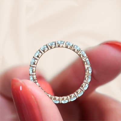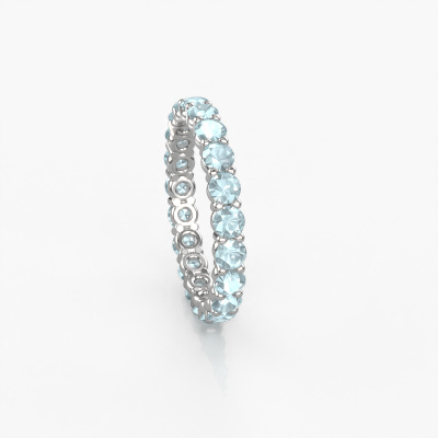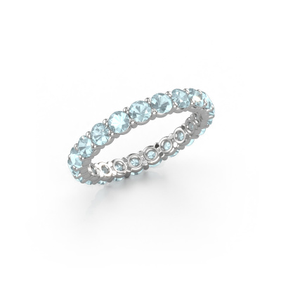 This is our Heddy rnd 2.9 ring. This specific type is called an eternity ring and it is set with a continuous line of identically cut gemstones. The ring is made in 14 Carat white gold and is set with small aquamarine, 2.9 mm. The amazing aquamarine are identical in size and are set in the ring band. Our aquamarine are selected with great care so they are identical, which gives the best result. In order to get the best result, our artisans position all aquamarine by hand with the utmost care. Our Goldsmiths have one ambition, which is creating the perfect ring. That is why we love what we do. In the end you get a stunning classic white gold ring with a row of aquamarine which seem to have no beginning nor end. The perfect symbol of your undying love for her! How special is that!By using a combination of the latest modern techniques, combined with ancient crafting, we can make all our rings in our own studio. Each jewel is made to order. This is advantageous because we can offer you a price you won't find anywhere else.