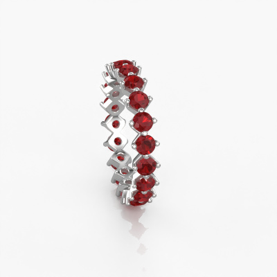 This is our Janie 3.0mm ring. This specific type is called an eternity ring and it is set with a continuous line of identically cut gemstones. The ring is made in 14 Carat white gold and is set with small ruby, 3 mm. The amazing ruby are identical in size and are set in the ring band. Our ruby are selected with great care so they are identical, which gives the best result. In order to get the best result, our artisans position all ruby by hand with the utmost care. Our Goldsmiths have one ambition, which is creating the perfect ring. That is why we love what we do. In the end you get a stunning fantasy white gold stackable ring with a row of ruby which seem to have no beginning nor end. The perfect symbol of your undying love for her! How special is that!By using a combination of the latest modern techniques, combined with ancient crafting, we can make all our rings in our own studio. Each jewel is made to order. This is advantageous because we can offer you a price you won't find anywhere else.
