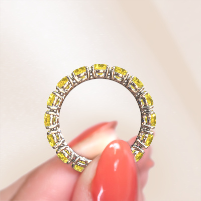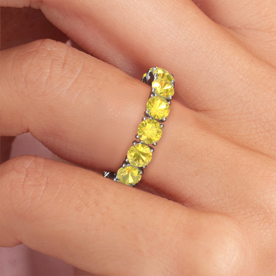 This Vivienne 4.0 stackable ring in 14 Carat white gold is set with yellow sapphire. This white gold stacked Vivienne 4.0 ring is the perfect addition to your ring collection! As the name suggests, it is a ring which can be combined on one finger with another ring. It gives you the opportunity to create your own style. A stacked ring usually represents a certain memory of someone special or a memorable moment. It is common to combine a stacked ring, representing an anniversary, with a wedding ring. But this eternity ring, combined with your other rings, also makes a classy fashion item. A customized modern stackable ring is the perfect gift! New exquisite designs are added daily by our team of passionate goldsmiths. And each design can be customized. Simply customize the precious metals and the color of gemstones which will be used, for example. This makes your design of the modern Vivienne 4.0 stackable ring truly unique!Because we design and deliver our own rings, we can offer you a ring at a price you won't find anywhere else. A ring is made to order, which helps prevent excess supplies, so we can make you a great price offer. We understand it feels risky, buying your ring online, but we will gladly assist in the designing process, taking your budget into consideration.To make it easier for you, we offer a 30 day return policy. Check our terms and conditions.