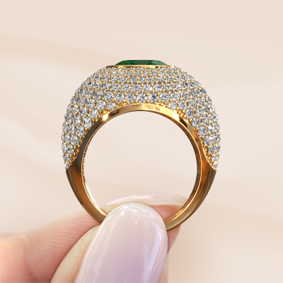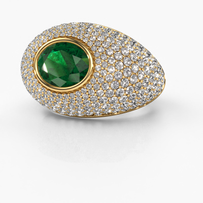 Are you looking for a pavé set ring with an eye-catching single gemstone? How do you like this Armida ring? This gold Armida ring is set with a beautiful 9x7 mm oval emerald. The emerald is carefully selected by our emeralds suppliers. Subsequently, these gemstones are then set by our goldsmith according to ancient tradition. The ring will then be polished to perfection creating a unique ring with a stunning emerald. Created especially for you. How do you like this exclusive gold ring? Simply customize this Armida ring, using our online tool. Subsequently, your personal pavé set Armida ring will be made by hand by our goldsmiths. Precious metals and gemstones can be customized to your liking. Do you have specific preferences which are unavailable in our online tool? Please feel free to contact us. We will customize your personal exclusive ring to your liking.Because we design and deliver our own rings, we can offer you a ring at a price you won't find anywhere else. A ring is made to order, which helps prevent excess supplies, so we can make you a great price offer. We understand it feels risky, buying your ring online, but we will gladly assist in the designing process, taking your budget into consideration.To make it easier for you, we offer a 30 day return policy. Check our terms and conditions.