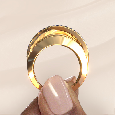 How would you describe your own style? Are you looking for something uniquely different? This split band gold Clair 3 ring is astonishing! Simply customize to your or her own liking. This ring is set with sapphire. These sapphire have been carefully selected because your ring must be adorned with nothing but the most beautiful gemstone. Wouldn't you agree? Our expert goldsmith will create your ring in our own crafting studios, where the sapphire will be set with care. The ring will then be polished to perfection to give it that extra sparkle. It's a perfect ring for a woman of excellent taste!The best part of this split band ring is that you can customize it to your own liking. Your style, your choice, your ring. On top of that, your exclusive gold ring will be made by hand with eco-friendly materials! Please feel free to easily customize the ring, using our online tool.By using our modern techniques, we can design and customize the finest quality jewels with the utmost care for you. Our rings are always priced 30 percent lower than other jewelers. We make rings to order, so we don't have to maintain a large stock. If you have a certain budget, we are more than happy to advice you accordingly.To make it easier for you, we offer a 30 day return policy. Check our terms and conditions.