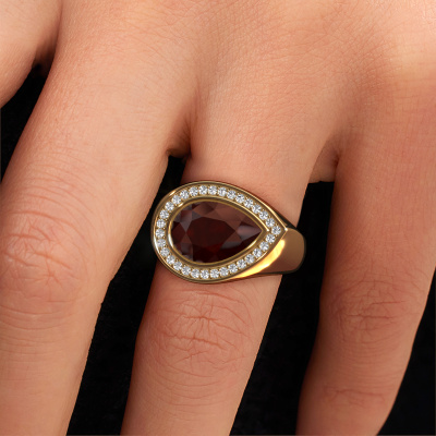 Are you looking for a special ring with an eye-catching single gemstone? How do you like this Latashia ring? This gold Latashia ring is set with a beautiful 12x8 mm pear garnet. The garnet is carefully selected by our garnet suppliers. Subsequently, these gemstones are then set by our goldsmith according to ancient tradition. The ring will then be polished to perfection creating a unique ring with a stunning garnet. Created especially for you. Customize your own specialLatashia ring, which will then be created by our goldsmiths with great passion. Do you prefer a different option than is shown here in the gold Latashia ring? Then our online tools offers various options. Feel free to ask us for help if you are unable to succeed. We are happy to answer your questions!By using a combination of the latest modern techniques, combined with ancient crafting, we can make all our rings in our own studio. Each jewel is made to order. This is advantageous because we can offer you a price you won't find anywhere else.To make it easier for you, we offer a 30 day return policy. Check our terms and conditions.