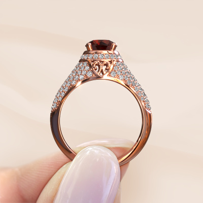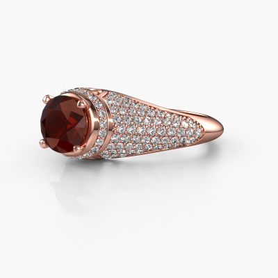 This exclusive rose gold Sharee ring is a true work of art! This ring is made of 14 Carat rose gold and is set with 6.5 mm round garnet. The smallest ornaments are crafted by our goldsmith with a lot of patience and great passion. In order to create this ring with great precision, this craft requires a keen eye and a skillful hand. A challenge which ignites a fire in our expert goldsmiths. The exquisite garnet are set in a way that their unique qualities are strengthened. This gives the ring an even more glamorous appearance. The ring is unique by itself though, because of the natural birthstones we selected especially for this Sharee ring. And by choosing the precious metal yourself, you create a unique ring. The special sharee ring, as shown here, can be customized to your liking. Our online tool offers many different options but please feel free to contact us if you want changes made to your sharee ring, which are unavailable in our online tool.Because we design and deliver our own rings, we can offer you a ring at a price you won't find anywhere else. A ring is made to order, which helps prevent excess supplies, so we can make you a great price offer. We understand it feels risky, buying your ring online, but we will gladly assist in the designing process, taking your budget into consideration.To make it easier for you, we offer a 30 day return policy. Check our terms and conditions.