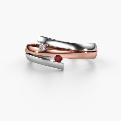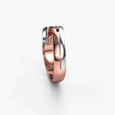 This ring called Dena is made of 14 Carat rose gold and is set with ruby. Are you in the market for a unique rose gold ring with a modern twist? Then this ring might suit you. Simply customize to your or her liking. It suits the contemporary modern woman. This fantasy ring is set with beautiful ruby. This has been carefully selected. Because your ring must be adorned with nothing but the most stunning gemstone. Our expert goldsmith will create your ring in our own studio, where the ruby will be set with great care. The ring will then be polished to perfection to create a stunning ring. After receiving your order, our goldsmiths will start the creative process of making your Dena ring. We don't keep stock. This is advantageous because these costs will not be passed on to you. Therefore, we can offer jewelry at exceptionally low prices.New jewelry designs are added to our online collection daily. Our team of passionate designers strive to create extraordinary and diverse designs. Have you seen a ring you like? Please feel free to contact us. Based on a good price/ quality ratio, we will make you an offer you can't refuse!To make it easier for you, we offer a 30 day return policy. Check our terms and conditions.