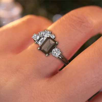 How would you describe your own style? Are you looking for something uniquely different? This fashionable white gold Sabina ring is astonishing! Simply customize to your or her own liking. This ring is set with smokey quartz. These smokey quartz have been carefully selected because your ring must be adorned with nothing but the most beautiful gemstone. Wouldn't you agree? Our expert goldsmith will create your ring in our own crafting studios, where the smokey quartz will be set with care. The ring will then be polished to perfection to give it that extra sparkle. It's a perfect ring for a woman of excellent taste!Customize your own fashionableSabina ring, which will then be created by our goldsmiths with great passion. Do you prefer a different option than is shown here in the white gold Sabina ring? Then our online tools offers various options. Feel free to ask us for help if you are unable to succeed. We are happy to answer your questions!Because we design and deliver our own rings, we can offer you a ring at a price you won't find anywhere else. A ring is made to order, which helps prevent excess supplies, so we can make you a great price offer. We understand it feels risky, buying your ring online, but we will gladly assist in the designing process, taking your budget into consideration.To make it easier for you, we offer a 30 day return policy. Check our terms and conditions.