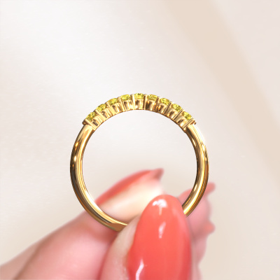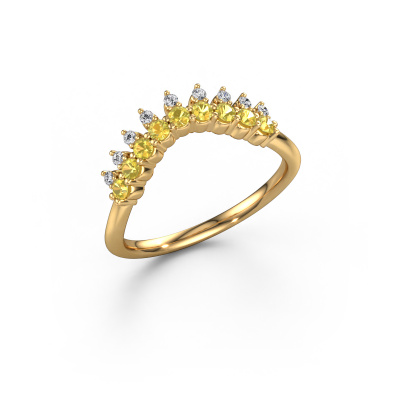 This Vivian B stackable ring in 14 Carat gold is set with yellow sapphire. This gold stacked Vivian B ring is the perfect addition to your ring collection! As the name suggests, it is a ring which can be combined on one finger with another ring. It gives you the opportunity to create your own style. A stacked ring usually represents a certain memory of someone special or a memorable moment. It is common to combine a stacked ring, representing an anniversary, with a wedding ring. But this fashionable ring, combined with your other rings, also makes a classy fashion item. Customize your own fashionableVivian B stackable ring, which will then be created by our goldsmiths with great passion. Do you prefer a different option than is shown here in the gold Vivian B stackable ring? Then our online tools offers various options. Feel free to ask us for help if you are unable to succeed. We are happy to answer your questions!After receiving your order, our goldsmiths will start the creative process of making your Vivian B ring. We don't keep stock. This is advantageous because these costs will not be passed on to you. Therefore, we can offer jewelry at exceptionally low prices.To make it easier for you, we offer a 30 day return policy. Check our terms and conditions.