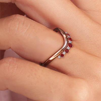 Stacked rings are the perfect addition to your ring collection. They are very popular! This 14 Carat rose gold stackable ring with round ruby can be combined with other stacked rings or a ring you currently own. A stacked ring is a perfect reminder of a memorable moment or a loved one. Stack the milestones in your life and let the rings do the talking. This fine stackable ring is called Lyla B. It was designed by our own expert goldsmiths and we still make it by hand in our own artisan studio. Simply customize to your liking!Customize your own fineLyla B stackable ring, which will then be created by our goldsmiths with great passion. Do you prefer a different option than is shown here in the rose gold Lyla B stackable ring? Then our online tools offers various options. Feel free to ask us for help if you are unable to succeed. We are happy to answer your questions!After receiving your order, our goldsmiths will passionately start the creative process of making your ring in our own studio. Because we don't have a big stockpile, these costs will not be passed on to you. Our pricing is proof of that! We offer top quality jewels at lowest price, guaranteed.To make it easier for you, we offer a 30 day return policy. Check our terms and conditions.