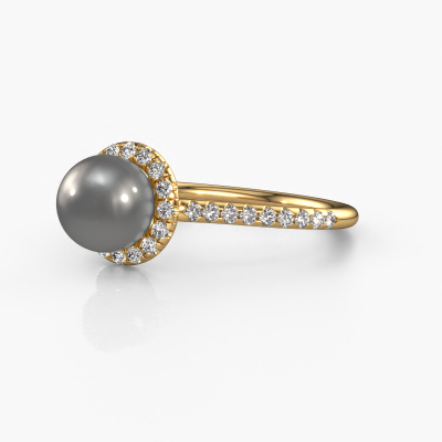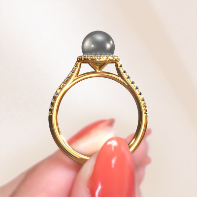 The ring shown above is called Anke. This type of ring is known as a solitaire ring. The 14 Carat gold ring is set with a 7 mm sphere grey pearl center stone surrounded by smaller sized diamonds. This refined gold halo ring, is set with a big grey pearl embraced by smaller sized gemstones. The ring got its name for its halo which the smaller sized diamonds help create. In order to achieve a stunning halo, these smaller sized gemstones have to be aligned perfectly so light reflects evenly on the grey pearl from every angle. And our expert goldsmiths get the job done. Each carefully selected grey pearl is set by hand with utmost precision. During manufacturing, light fall is constantly monitored to make sure the special halo effect is still visible. In the end you get a unique ring with a radiant grey pearl gemstone centerpiece. An exquisite ring indeed! The refined Anke ring, as shown here, can be customized to your liking. Our online tool offers many different options but please feel free to contact us if you want changes made to your Anke ring, which are unavailable in our online tool.By using a combination of the latest modern techniques, combined with ancient crafting, we can make all our rings in our own studio. Each jewel is made to order. This is advantageous because we can offer you a price you won't find anywhere else.To make it easier for you, we offer a 30 day return policy. Check our terms and conditions.