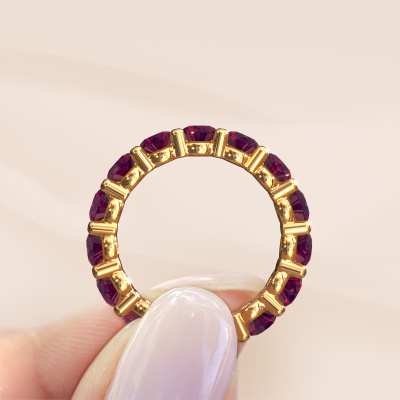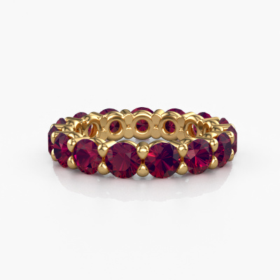 This exclusive gold Heddy rnd 4.2 ring is a true work of art! This ring is made of 14 Carat gold and is set with 4.2 mm round rhodolite. The smallest ornaments are crafted by our goldsmith with a lot of patience and great passion. In order to create this ring with great precision, this craft requires a keen eye and a skillful hand. A challenge which ignites a fire in our expert goldsmiths. The exquisite rhodolite are set in a way that their unique qualities are strengthened. This gives the ring an even more glamorous appearance. The ring is unique by itself though, because of the natural birthstones we selected especially for this Heddy rnd 4.2 ring. And by choosing the precious metal yourself, you create a unique ring. The best part of this eternity ring is that you can customize it to your own liking. Your style, your choice, your ring. On top of that, your exclusive gold ring will be made by hand with eco-friendly materials! Please feel free to easily customize the ring, using our online tool.After receiving your order, our goldsmiths will start the creative process of making your Heddy rnd 4.2 ring. We don't keep stock. This is advantageous because these costs will not be passed on to you. Therefore, we can offer jewelry at exceptionally low prices.To make it easier for you, we offer a 30 day return policy. Check our terms and conditions.