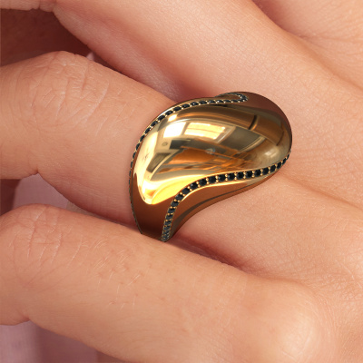 This is a stunning tasteful gold Phyliss ring. It is set with black diamond. A designer ring, fit for classy women. The ring is designed by our own expert goldsmiths. In our artisan studio, we use a combination of the latest techniques and ancient traditional craftsmanship, so we are able to create a perfectly designed ring. Our expert goldsmiths strive for perfection so they won't stop until a perfect ring, a true work of art, is created. A unique ring which matches your own style. The best part of this tasteful ring is that you can customize it to your own liking. Your style, your choice, your ring. On top of that, your design gold ring will be made by hand with eco-friendly materials! Please feel free to easily customize the ring, using our online tool.After receiving your order, our goldsmiths will passionately start the creative process of making your ring in our own studio. Because we don't have a big stockpile, these costs will not be passed on to you. Our pricing is proof of that! We offer top quality jewels at lowest price, guaranteed.To make it easier for you, we offer a 30 day return policy. Check our terms and conditions.