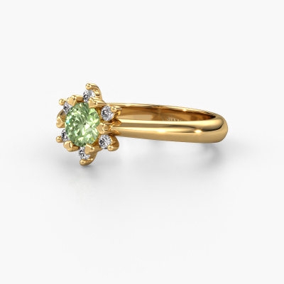How would you describe your own style? Are you looking for something uniquely different? This cluster gold Liesbeth ring is astonishing! Simply customize to your or her own liking. This ring is set with green lab grown diamond. These green lab grown diamondd have been carefully selected because your ring must be adorned with nothing but the most beautiful gemstone. Wouldn't you agree? Our expert goldsmith will create your ring in our own crafting studios, where the green lab grown diamond will be set with care. The ring will then be polished to perfection to give it that extra sparkle. It's a perfect ring for a woman of excellent taste!As soon as you finished designing your Liesbeth ring with our online tool, our goldsmiths will start their creative process of making your ring. This will be done with passion and care, according ancient crafting. On top of that, our jewels are made of eco-friendly materials. Simply customize online with our online tool, if you want any changes made. If you want specific changes made to your Liesbeth ring, that are unavailable in our online tool, please feel free to contact our expert designers.By using our modern techniques, we can design and customize the finest quality jewels with the utmost care for you. Our rings are always priced 30 percent lower than other jewelers. We make rings to order, so we don't have to maintain a large stock. If you have a certain budget, we are more than happy to advice you accordingly.To make it easier for you, we offer a 30 day return policy. Check our terms and conditions.