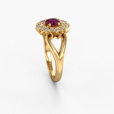 How would you describe your own style? Are you looking for something uniquely different? This royal gold Chasidy 1 ring is astonishing! Simply customize to your or her own liking. This ring is set with rhodolite. These rhodolite have been carefully selected because your ring must be adorned with nothing but the most beautiful gemstone. Wouldn't you agree? Our expert goldsmith will create your ring in our own crafting studios, where the rhodolite will be set with care. The ring will then be polished to perfection to give it that extra sparkle. It's a perfect ring for a woman of excellent taste!How do you like this exclusive gold ring? Simply customize this Chasidy 1 ring, using our online tool. Subsequently, your personal royal Chasidy 1 ring will be made by hand by our goldsmiths. Precious metals and gemstones can be customized to your liking. Do you have specific preferences which are unavailable in our online tool? Please feel free to contact us. We will customize your personal exclusive ring to your liking.By using a combination of the latest modern techniques, combined with ancient crafting, we can make all our rings in our own studio. Each jewel is made to order. This is advantageous because we can offer you a price you won't find anywhere else.To make it easier for you, we offer a 30 day return policy. Check our terms and conditions.