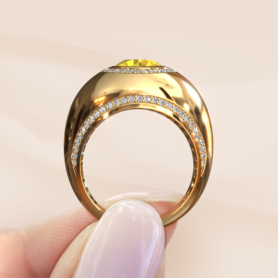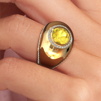 This is a stunning birthstones gold Roxann ring. It is set with yellow sapphire. A designer ring, fit for classy women. The ring is designed by our own expert goldsmiths. In our artisan studio, we use a combination of the latest techniques and