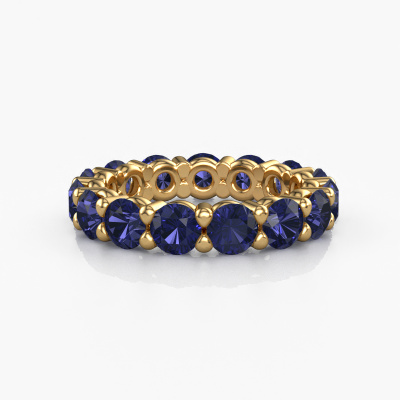 This exclusive gold Heddy rnd 4.2 ring is a true work of art! This ring is made of 14 Carat gold and is set with 4.2 mm round sapphire. The smallest ornaments are crafted by our goldsmith with a lot of patience and great passion. In order to create this ring with great precision, this craft requires a keen eye and a skillful hand. A challenge which ignites a fire in our expert goldsmiths. The exquisite sapphire are set in a way that their unique qualities are strengthened. This gives the ring an even more glamorous appearance. The ring is unique by itself though, because of the natural birthstones we selected especially for this Heddy rnd 4.2 ring. And by choosing the precious metal yourself, you create a unique ring. The best part of this eternity ring is that you can customize it to your own liking. Your style, your choice, your ring. On top of that, your exclusive gold ring will be made by hand with eco-friendly materials! Please feel free to easily customize the ring, using our online tool.After receiving your order, our goldsmiths will start the creative process of making your Heddy rnd 4.2 ring. We don't keep stock. This is advantageous because these costs will not be passed on to you. Therefore, we can offer jewelry at exceptionally low prices.To make it easier for you, we offer a 30 day return policy. Check our terms and conditions.