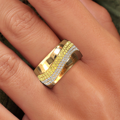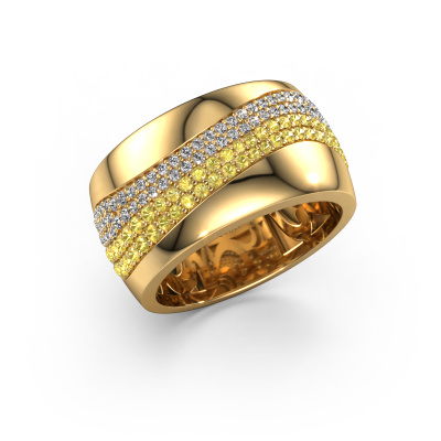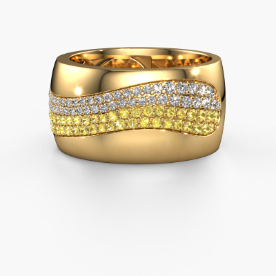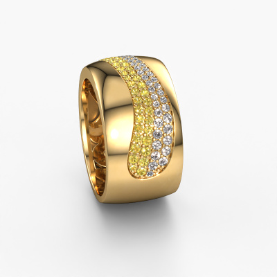 This ring is called Ria. It is made of 14 Carat gold and is set with 1 mm yellow sapphire. Are you looking for a unique gold ring with a modern appearance? Then this is the ring for you. Simply customize to your or her liking. Perfect for a modern, contemporary woman! This wide ring is adorned with stunning yellow sapphire. It was carefully selected because your ring must be adorned with nothing but the most beautiful gemstones. Our expert goldsmith will create your ring in our own studio, where the yellow sapphire will be set with great care. The ring will then be polished to perfection to create a beautiful ring. Are you on a budget? Please feel free to contact us, so we can go discuss your options. We offer our rings at guaranteed best price, because we make them to order. You won't find such a price anywhere else!