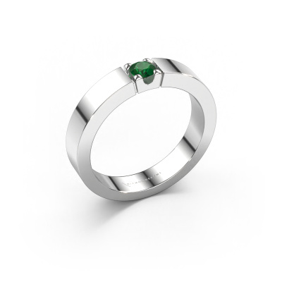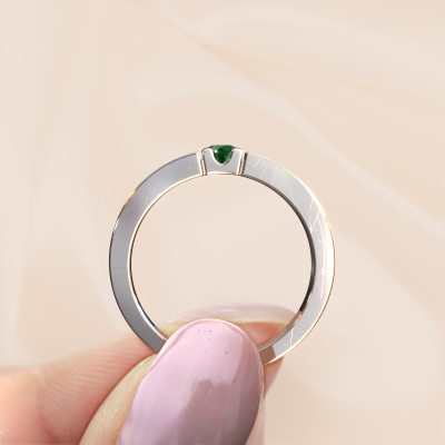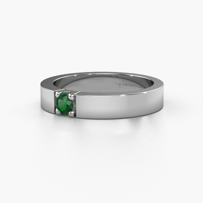This extraordinary ring is called Dana 1. This type of ring is known as a memoire ring, because it's birthstones are set in a continuous line. This makes it easy to combine with other rings. The band of this platinum ring is set in a combination of emerald and emerald 3.7 mm. You can easily choose the combination you prefer online. As you can see, a single emerald is set in this single alliance platinum ring. The memoire ring represents collaboration. And that is precisely what these gemstones do, collaborate. Together they add a beautiful effect to the band of a modern ring! Such a meaningful ring, wouldn't you agree? All of our hand selected emeralds are positioned by hand by our expert goldsmith. It's a precise task, which can only be completed successfully through the combination of pure craftsmanship and usage of the latest techniques which give it an optimal effect. To create a perfect reflection of light, all the gemstones have to be perfectly aligned in the same way. During manufacturing, the expert goldsmith will therefore monitor the reflection of light constantly to check whether the emeralds are aligned properly. This requires a skilled hand and a lot of patience but then the end product will be a true piece of art. And that is our mission!After receiving your order, our goldsmiths will passionately start the creative process of making your ring in our own studio. Because we don't have a big stockpile, these costs will not be passed on to you. Our pricing is proof of that! We offer top quality jewels at lowest price, guaranteed.Our team of talented, passionate designers add new ring designs to our online collection daily. Our objective in doing so, is to be able to offer you a wide variety of jewels. Please feel free to request a quote if you have specific wishes for your ring. We guarantee to make you an offer you can't refuse.To make it easier for you, we offer a 30 day return policy. Check our terms and conditions.