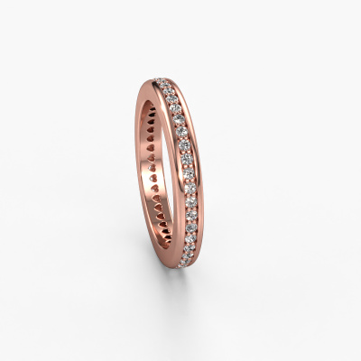 This extraordinary ring is called Elvire 3. This type of ring is known as a memoire ring, because it's birthstones are set in a continuous line. This makes it easy to combine with other rings. The band of this 14 Carat rose gold stackable ring is set in a combination of zirconia and zirconia 1.3 mm. You can easily choose the combination you prefer online. As you can see, a single zirconia is set in this single alliance rose gold stackable ring. The memoire ring represents collaboration. And that is precisely what these gemstones do, collaborate. Together they add a beautiful effect to the band of a modern stackable ring! Such a meaningful ring, wouldn't you agree? All of our hand selected cz-stones are positioned by hand by our expert goldsmith. It's a precise task, which can only be completed successfully through the combination of pure craftsmanship and usage of the latest techniques which give it an optimal effect. To create a perfect reflection of light, all the gemstones have to be perfectly aligned in the same way. During manufacturing, the expert goldsmith will therefore monitor the reflection of light constantly to check whether the cz-stones are aligned properly. This requires a skilled hand and a lot of patience but then the end product will be a true piece of art. And that is our mission!By using a combination of the latest modern techniques, combined with ancient crafting, we can make all our rings in our own studio. Each jewel is made to order. This is advantageous because we can offer you a price you won't find anywhere else.Our team of talented, passionate designers add new ring designs to our online collection daily. Our objective in doing so, is to be able to offer you a wide variety of jewels. Please feel free to request a quote if you have specific wishes for your ring. We guarantee to make you an offer you can't refuse.To make it easier for you, we offer a 30 day return policy. Check our terms and conditions.