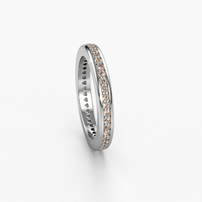 This extraordinary ring is called Elvire 3. This type of ring is known as a memoire ring, because it's birthstones are set in a continuous line. This makes it easy to combine with other rings. The band of this 14 Carat white gold stackable ring is set in a combination of brown diamond and brown diamond 0.48 crt. You can easily choose the combination you prefer online. As you can see, a single brown diamond is set in this single alliance white gold stackable ring. The memoire ring represents collaboration. And that is precisely what these gemstones do, collaborate. Together they add a beautiful effect to the band of a modern stackable ring! Such a meaningful ring, wouldn't you agree? All of our hand selected brown diamonds are positioned by hand by our expert goldsmith. It's a precise task, which can only be completed successfully through the combination of pure craftsmanship and usage of the latest techniques which give it an optimal effect. To create a perfect reflection of light, all the gemstones have to be perfectly aligned in the same way. During manufacturing, the expert goldsmith will therefore monitor the reflection of light constantly to check whether the brown diamonds are aligned properly. This requires a skilled hand and a lot of patience but then the end product will be a true piece of art. And that is our mission!By using a combination of the latest modern techniques, combined with ancient crafting, we can make all our rings in our own studio. Each jewel is made to order. This is advantageous because we can offer you a price you won't find anywhere else.Our team of talented, passionate designers add new ring designs to our online collection daily. Our objective in doing so, is to be able to offer you a wide variety of jewels. Please feel free to request a quote if you have specific wishes for your ring. We guarantee to make you an offer you can't refuse.To make it easier for you, we offer a 30 day return policy. Check our terms and conditions.