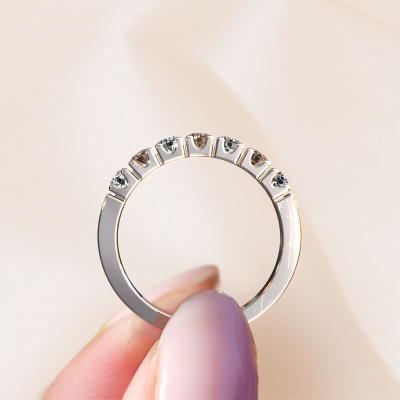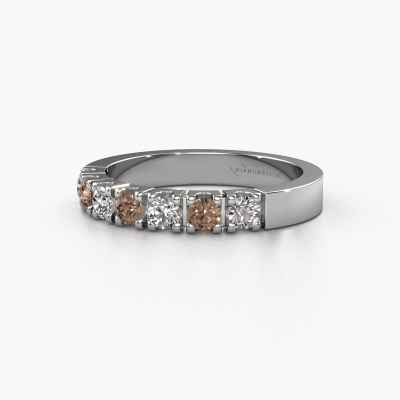 This extraordinary ring is called Dana 7. This type of ring is known as a memoire ring, because its gemstones are set in a continuous line. This makes it easy to combine with other rings. The band of this platinum ring is set in a combination of brown diamond and lab-grown diamond 0.70 crt. You can easily choose the combination you prefer online. As you can see, a single brown diamond is set in this single alliance platinum ring. The memoire ring represents collaboration. And that is precisely what these gemstones do, collaborate. Together they add a beautiful effect to the band of a modern ring! Such a meaningful ring, wouldn't you agree? All of our hand selected brown diamonds are positioned by hand by our expert goldsmith. It's a precise task, which can only be completed successfully through the combination of pure craftsmanship and usage of the latest techniques which give it an optimal effect. To create a perfect reflection of light, all the gemstones have to be perfectly aligned in the same way. During manufacturing, the expert goldsmith will therefore monitor the reflection of light constantly to check whether the brown diamonds are aligned properly. This requires a skilled hand and a lot of patience but then the end product will be a true piece of art. And that is our mission!After receiving your order, our goldsmiths will passionately start the creative process of making your ring in our own studio. Because we don't have a big stockpile, these costs will not be passed on to you. Our pricing is proof of that! We offer top quality jewels at lowest price, guaranteed.Our team of talented, passionate designers add new ring designs to our online collection daily. Our objective in doing so, is to be able to offer you a wide variety of jewels. Please feel free to request a quote if you have specific wishes for your ring. We guarantee to make you an offer you can't refuse.To make it easier for you, we offer a 30 day return policy. Check our terms and conditions.