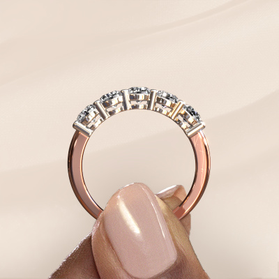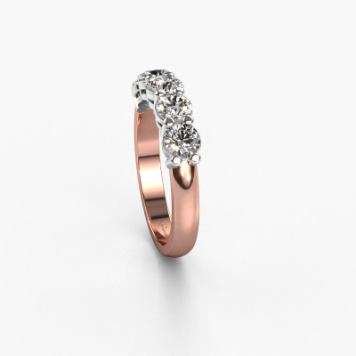 This extraordinary ring is called Michelle 5. This type of ring is known as a memoire ring, because its gemstones are set in a continuous line. This makes it easy to combine with other rings. The band of this 14 Carat rose gold ring is set in a combination of diamond and lab-grown diamond 1.50 crt. You can easily choose the combination you prefer online. As you can see, a single diamond is set in this single alliance rose gold ring. The memoire ring represents collaboration. And that is precisely what these gemstones do, collaborate. Together they add a beautiful effect to the band of a classic ring! Such a meaningful ring, wouldn't you agree? All of our hand selected diamonds are positioned by hand by our expert goldsmith. It's a precise task, which can only be completed successfully through the combination of pure craftsmanship and usage of the latest techniques which give it an optimal effect. To create a perfect reflection of light, all the gemstones have to be perfectly aligned in the same way. During manufacturing, the expert goldsmith will therefore monitor the reflection of light constantly to check whether the diamonds are aligned properly. This requires a skilled hand and a lot of patience but then the end product will be a true piece of art. And that is our mission!Are you on a budget? Please feel free to contact us, so we can go discuss your options. We offer our rings at guaranteed best price, because we make them to order. You won't find such a price anywhere else!