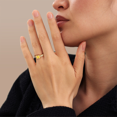 Are you looking for a edgy ring with an eye-catching single gemstone? How do you like this Charlotte Square ring? This gold Charlotte Square ring is set with a beautiful 5 mm princess yellow sapphire. The yellow sapphire is carefully selected by our yellow sapphire suppliers. Subsequently, these gemstones are then set by our goldsmith according to ancient tradition. The ring will then be polished to perfection creating a unique ring with a stunning yellow sapphire. Created especially for you. The best part of this edgy ring is that you can customize it to your own liking. Your style, your choice, your ring. On top of that, your modern gold ring will be made by hand with eco-friendly materials! Please feel free to easily customize the ring, using our online tool.By using our modern techniques, we can design and customize the finest quality jewels with the utmost care for you. Our rings are always priced 30 percent lower than other jewelers. We make rings to order, so we don't have to maintain a large stock. If you have a certain budget, we are more than happy to advice you accordingly.To make it easier for you, we offer a 30 day return policy. Check our terms and conditions.