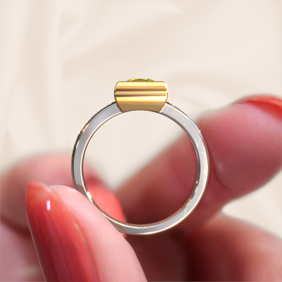 Are you looking for a edgy ring with an eye-catching single gemstone? How do you like this Charlotte Square ring? This white gold Charlotte Square ring is set with a beautiful 5 mm princess yellow sapphire. The yellow sapphire is carefully selected by our yellow sapphire suppliers. Subsequently, these gemstones are then set by our goldsmith according to ancient tradition. The ring will then be polished to perfection creating a unique ring with a stunning yellow sapphire. Created especially for you. The best part of this edgy ring is that you can customize it to your own liking. Your style, your choice, your ring. On top of that, your modern white gold ring will be made by hand with eco-friendly materials! Please feel free to easily customize the ring, using our online tool.By using our modern techniques, we can design and customize the finest quality jewels with the utmost care for you. Our rings are always priced 30 percent lower than other jewelers. We make rings to order, so we don't have to maintain a large stock. If you have a certain budget, we are more than happy to advice you accordingly.To make it easier for you, we offer a 30 day return policy. Check our terms and conditions.