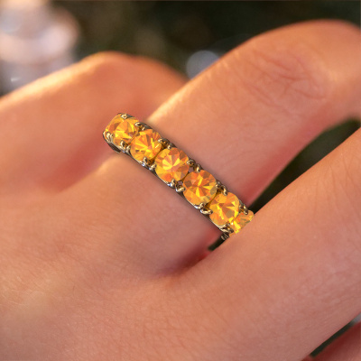 This Estee 4.2 ring in 14 Carat gold is set with citrin. This gold stacked Estee 4.2 ring is the perfect addition to your ring collection! As the name suggests, it is a ring which can be combined on one finger with another ring. It gives you the opportunity to create your own style. A stacked ring usually represents a certain memory of someone special or a memorable moment. It is common to combine a stacked ring, representing an anniversary, with a wedding ring. But this eternity ring, combined with your other rings, also makes a classy fashion item. The eternity Estee 4.2 ring, as shown here, can be customized to your liking. Our online tool offers many different options but please feel free to contact us if you want changes made to your Estee 4.2 ring, which are unavailable in our online tool.After receiving your order, our goldsmiths will passionately start the creative process of making your ring in our own studio. Because we don't have a big stockpile, these costs will not be passed on to you. Our pricing is proof of that! We offer top quality jewels at lowest price, guaranteed.To make it easier for you, we offer a 30 day return policy. Check our terms and conditions.