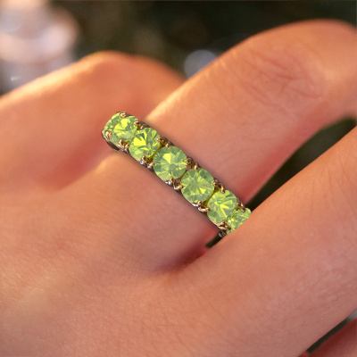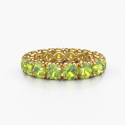 This Estee 4.2 ring in 14 Carat gold is set with peridot. This gold stacked Estee 4.2 ring is the perfect addition to your ring collection! As the name suggests, it is a ring which can be combined on one finger with another ring. It gives you the opportunity to create your own style. A stacked ring usually represents a certain memory of someone special or a memorable moment. It is common to combine a stacked ring, representing an anniversary, with a wedding ring. But this eternity ring, combined with your other rings, also makes a classy fashion item. The eternity Estee 4.2 ring, as shown here, can be customized to your liking. Our online tool offers many different options but please feel free to contact us if you want changes made to your Estee 4.2 ring, which are unavailable in our online tool.After receiving your order, our goldsmiths will passionately start the creative process of making your ring in our own studio. Because we don't have a big stockpile, these costs will not be passed on to you. Our pricing is proof of that! We offer top quality jewels at lowest price, guaranteed.To make it easier for you, we offer a 30 day return policy. Check our terms and conditions.